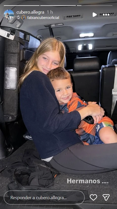 Pero, después de la palabra dura y necesaria del descargo, llegó otra decisión comunicacional mucho más silenciosa: una imagen. La adolescente compartió una historia en Instagram que, a simple vista, funciona como un gesto mínimo y cotidiano, pero que en redes fue leída como una señal: Allegra reposteó una historia en la que aparece abrazando a su hermano menor, Luca, dentro de un vehículo, y abajo se lee una palabra que opera como título emocional: “Hermanos…”.