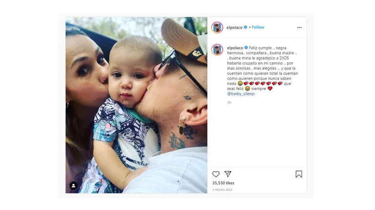 Poco les duro su separación. Dos semanas después de anunciar que ya no estaban juntos, ambos salieron a confirmar que se habían dado una nueva oportunidad. El Polaco fue invitado en la mesa de Mirtha Legrand donde le consultaron por su estado sentimental, a lo que se limitó a responder: “Estoy con la mamá de mi nena, estoy con Barby”. Además, el cantante compartió una publicación para el cumpleaños de ella que borró definitivamente su separación.