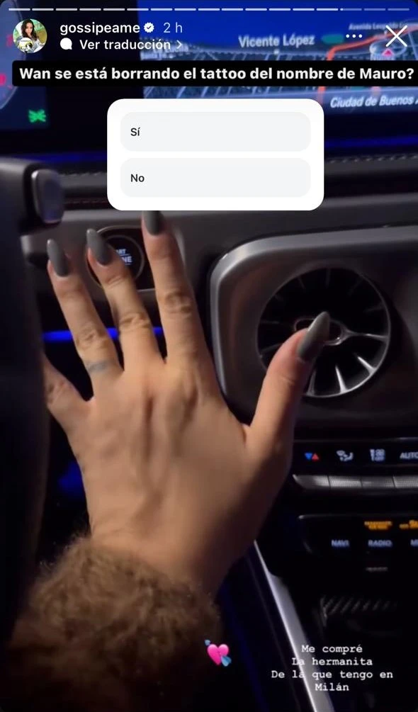 Sin embargo, al ver esta historia, Pochi de @Gossipeame descubrió un detalle muy particular, que no tenía que ver con el auto que estaba mostrando, sino con la separación de Icardi. Es que, en sus redes sociales compartió una imagen de la historia de la mediática y le consultó a sus seguidores: "¿Wan se está borrando el tattoo del nombre de Mauro?".