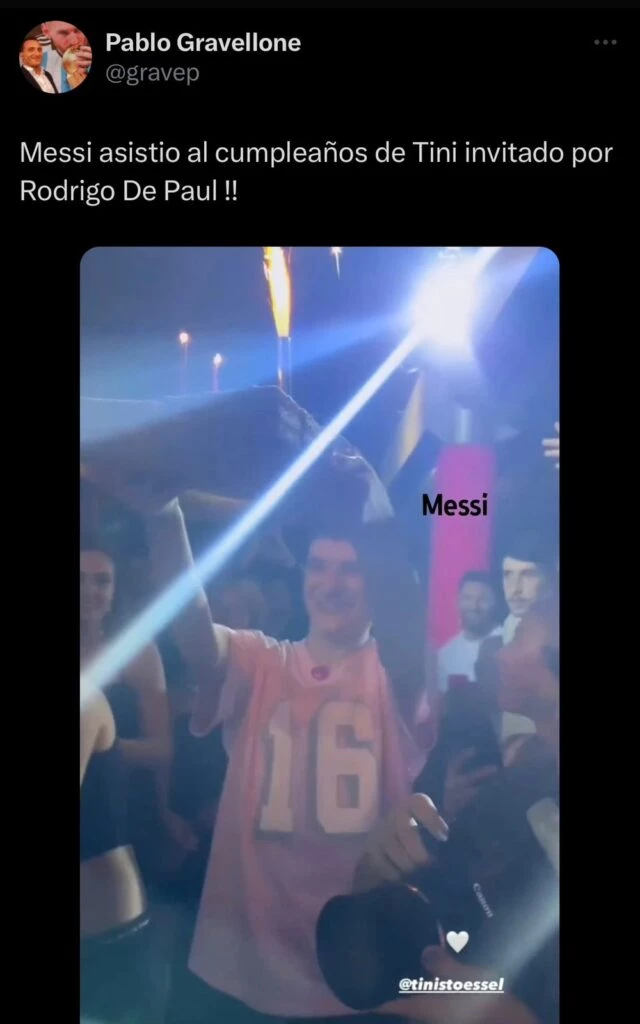 La divertida noche estuvo musicalizada por la Fiesta Bresh y una de las grandes sorpresas fue la presencia de Lionel Messi, capitán del seleccionado nacional, que según el usuario de Twitter Pablo Gravellone fue llevado por su compañero de equipo.
