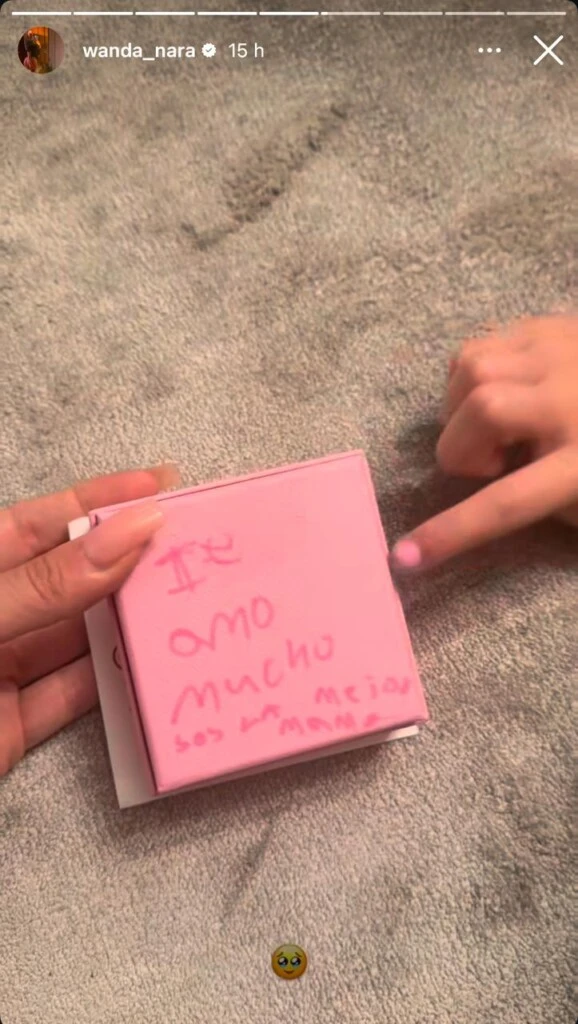 Sin embargo, lo que más llamó la atención de sus seguidores fue un video que subió Wanda a sus historias, en la que se veía el tierno regalo que le hizo su hija menor. "Lo hice sola recién... Atrás dice 'te amo mucho, sos la mejor mamá'", leyó Isabella el mensaje que le escribió en una pequeña caja rosa, y su madre no pudo ocultar su emoción.