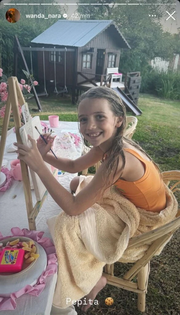 Esto mismo sucedió en las últimas horas, cuando Nara mostró que estuvo compartiendo con su hija Isabella, en una casita que tiene en el jardín. A su vez, subió unas postales en las que se la veía a la niña pintando muy contenta.