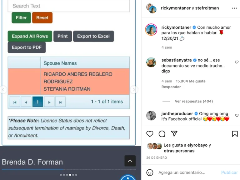 Todos los miembros de la familia han utilizado el apellido Montaner como parte de su identificación artística y nadie nunca dudó de eso. Pero esta nueva incógnita surgió cuando Ricky Montaner subió una foto de su certificado de matrimonio, para acallar los rumores que decían que no se había unido legalmente a Stefi Roitman.
