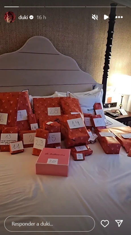 Es que la cantante acomodó sobre una cama uno por uno los 28 regalos que le compró a su pareja. En tanto envolvió cada paquete en papel de color rojo y a cada uno le puso un cartel con su respectivo número para causar una impresión aún mayor.