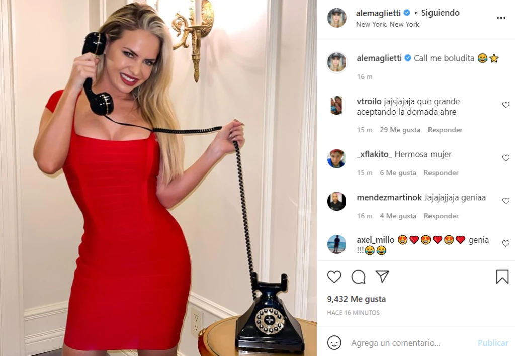 Además la abogada y periodista le puso humor a la situación. La modelo compartió una foto en su cuenta de Instagram con la frase "Call me boludita" (llamame boludita), haciendo referencia al tweet de Nara.