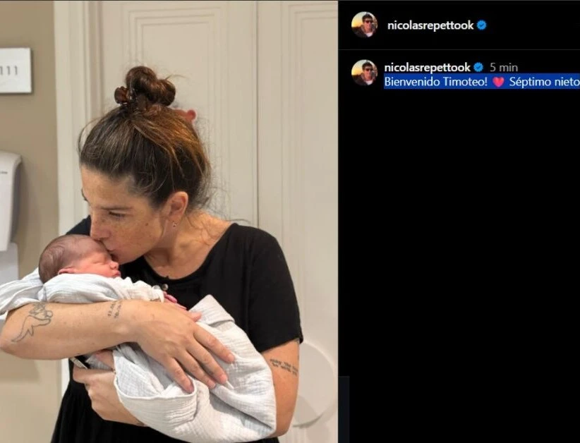 En las últimas horas y mientras su hija volvía a casa para reencontrarse con sus otros dos hijos (Belisario y Toribio), Nicolás Repetto, el flamante abuelo, decidió celebrar la llegada del niño con una publicación en su cuenta de Instagram, lo que generó una inesperada interna familiar.