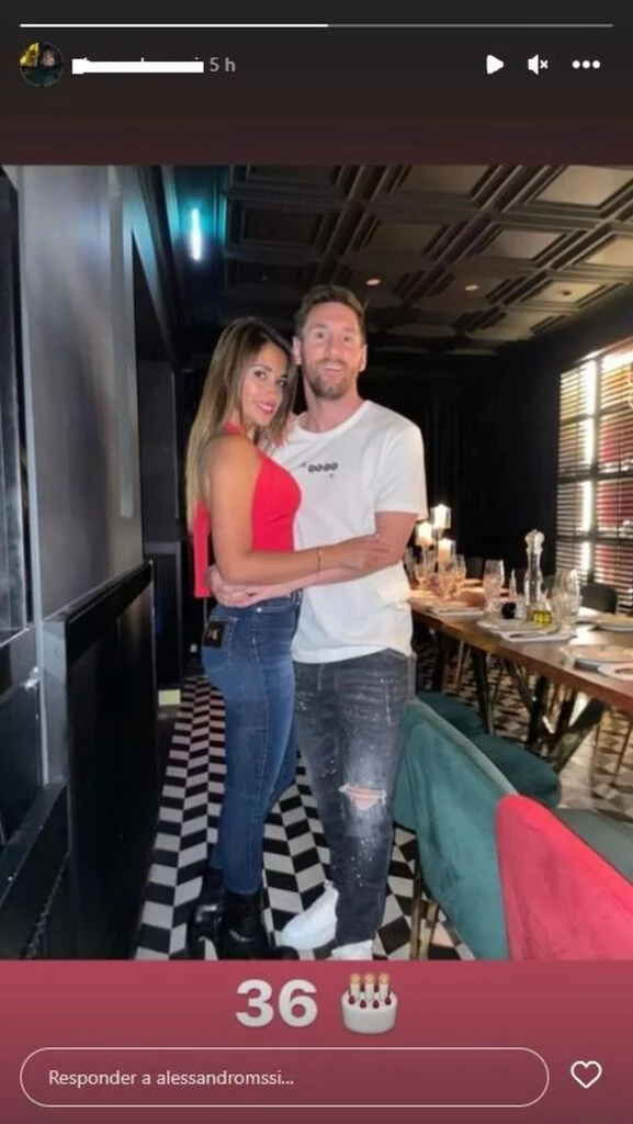 Lío Messi comenzó los festejos de sus 36 años en su Rosario natal, acompañado de sus afectos y posando junto a su esposa Antonela Roccuzzo. En la imagen se puede ver una larga mesa preparada para una cena de lujo y detalles de candelabros con velas, encendidos para la ocasión.