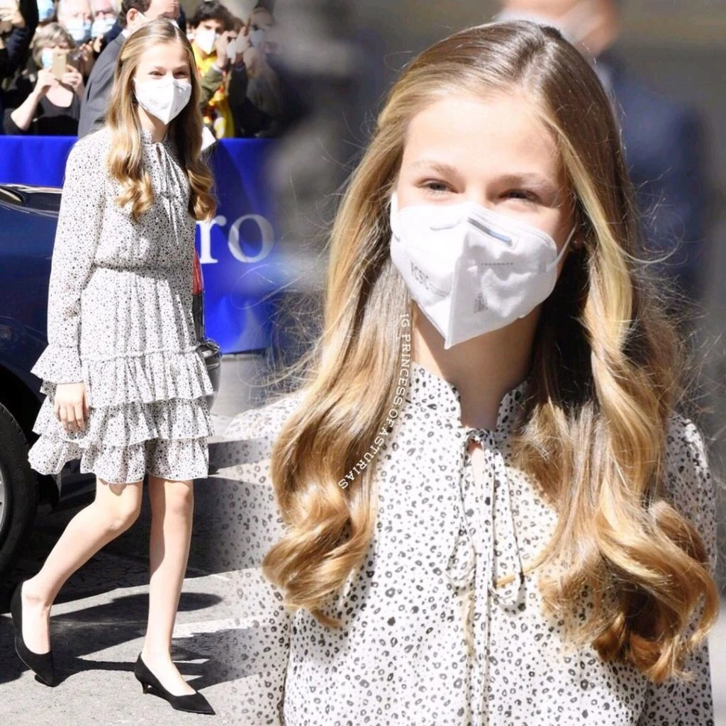 En su primer acto oficial, Leonor optó por usar un vestido floreado con volados, que ya había mostrado en otra ocasión, con zapatos negros de tacos bajos.