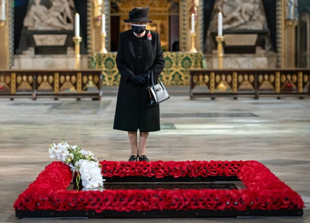 Hasta el momento la reina Isabel, en aislamiento y con todas las medidas sanitarias necesarias para protegerla de un posible contagio, no se había mostrado en público con barbijo. Sin embargo, este fin de semana lució un tapabocas negro en el Homenaje al Soldado Desconocido.