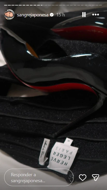 A través de sus historias de Instagram, compartió una foto del vestido negro, pero enfocada específicamente en la etiqueta del diseño. En la imagen se pudo ver claramente la marca Hervé Léger París y el talle XS de la prenda.