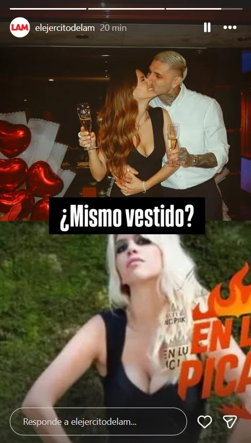 El diseño no tardó en generar comentarios en redes. Desde la cuenta de LAM (América TV) publicaron una imagen del look de la China junto a una antigua producción de fotos de Wanda Nara realizada en 2013 en la ciudad de Torino, Italia.