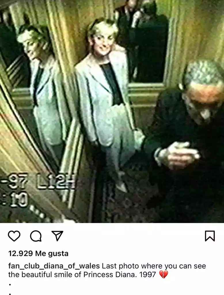 "La última foto en la que pueden ver la hermosa sonrisa de la princesa Diana. 1997", escribieron en el caption de la publicación los fanáticos de Lady Di.
