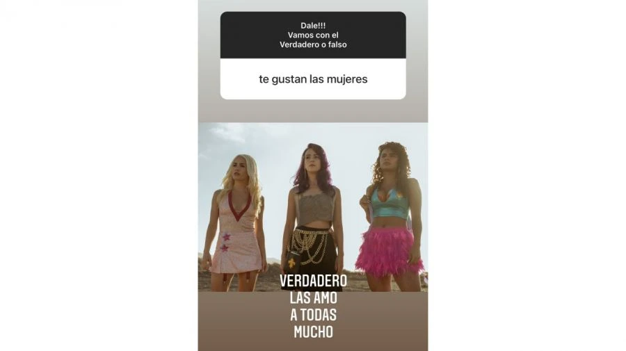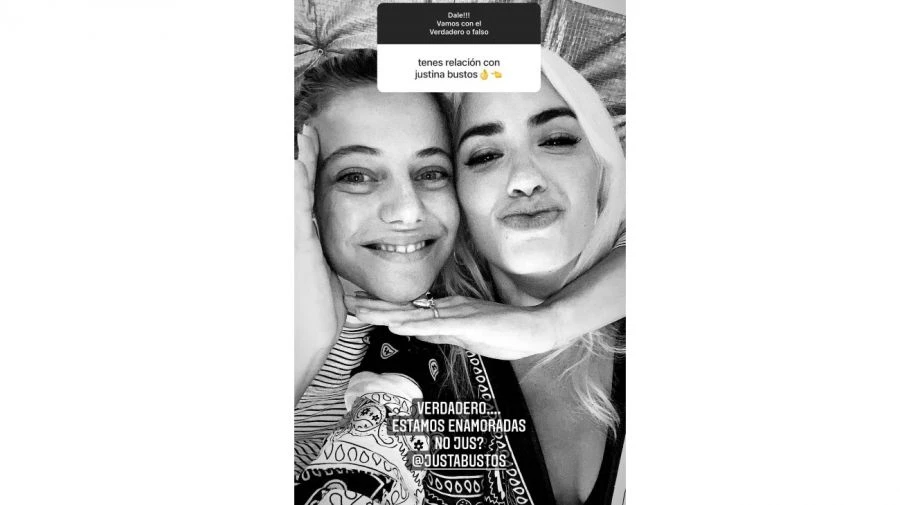 Inmediatamente le preguntaron si tiene relación con la actriz Justina Bustos, con quien también casi repite la escena del beso apasionado, aunque sólo quedó en un amago. “Verdadero. Estamos enamoradas... ¿No, Jus?”.