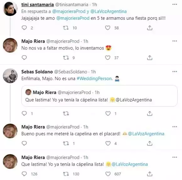 En paralelo, Majo opinó súper sincera sobre las palabras de su hija en Twitter. “¡Qué lástima! ¡Yo ya tenía la capelina lista! ¡Bueno, pues me meteré la capelina en el placard!”, comentó, dejando en claro que le gustaría verla llegar al altar.