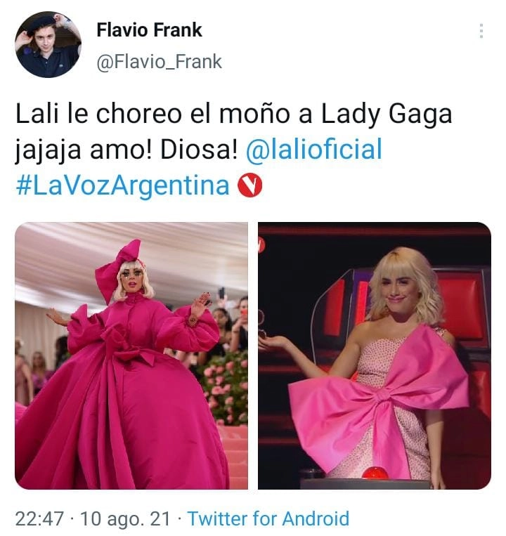 Además comentaron que se inspiró en la intérprete de "Bad romance" y escribieron: "Me encanta. Es una mini Lady Gaga"; "Lali le robó el moño a Lady Gaga. La amo"; "Es la Lady Gaga argentina".