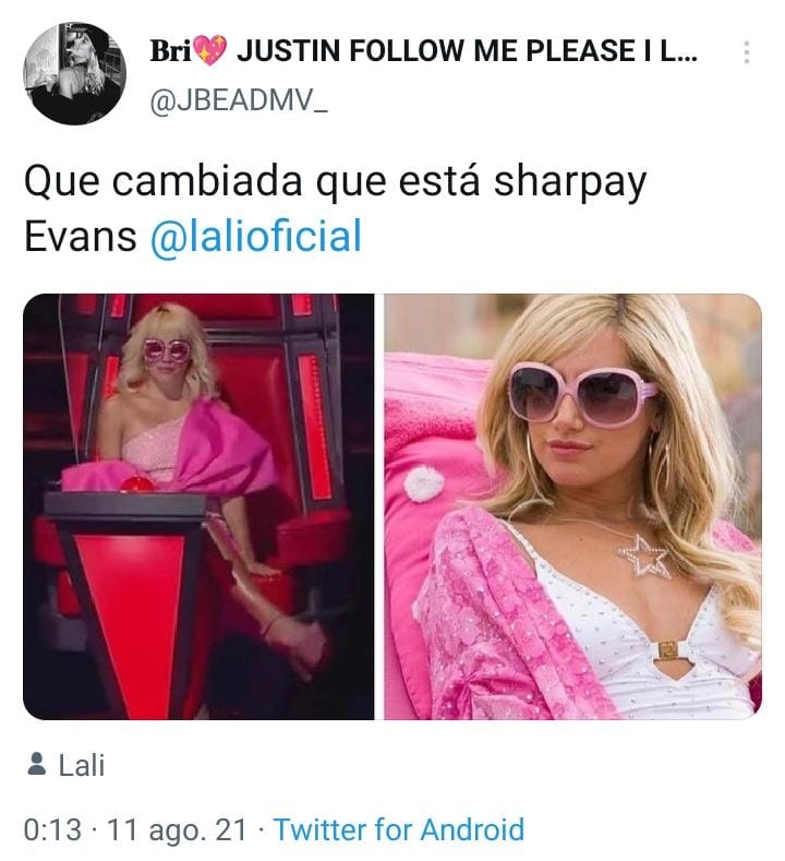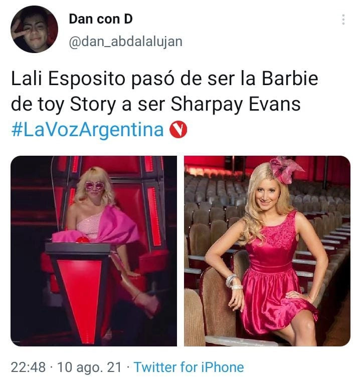 Como era de esperarse, los usuarios de Twitter encontraron similitudes entre el look de Lali y otras artistas y bromearon al respecto. "Moria Casan y Sharpay Evans se fusionaron en Lali", escribió un joven.