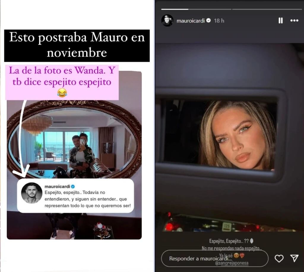 En noviembre del 2024 Icardi posaba frente a un espejo con la empresaria y escribía: “Espejito, espejito.. Todavía no entendieron, y siguen sin entender… que representan todo lo que no queremos ser!”. Y fue esta semana, dos meses más tarde, que compartió una foto de su actual pareja y escribió: “Espejito, Espejito.. ?? No me respondas nada espejito… ya lo sé”.