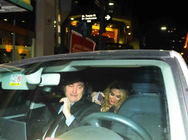 El candidato a presidente por La Libertad Avanza (LLA) la estaba esperando desde hacia media hora estacionado en la esquina, trabajando con su computadora en el auto. Al encontrarse, ella subió a la parte de atrás del vehículo y partieron.