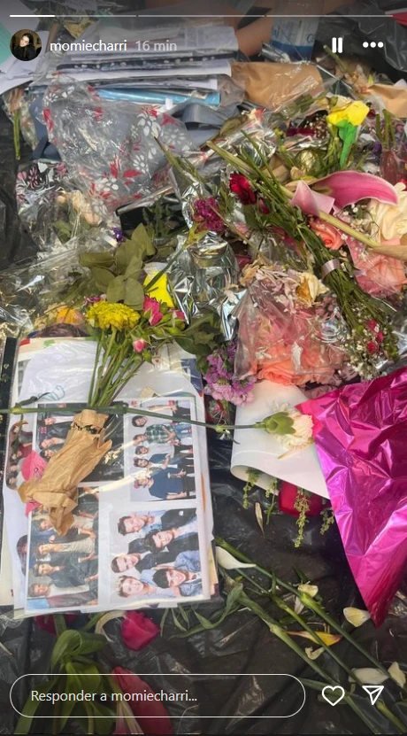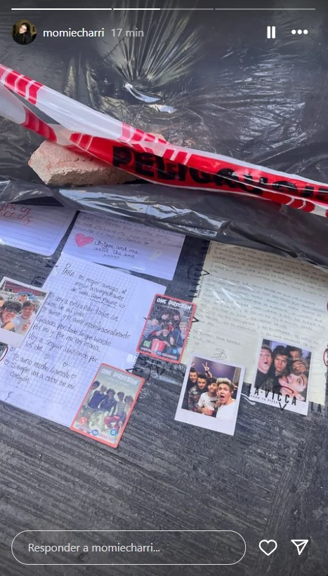 En dicha postal se puede ver el santuario realizado alrededor de un árbol repleto de fotos de Liam Payne, flores y recuerdos de su carrera. Además improvisaron con plástico transparente una suerte de cobertor para resguardar los recuerdos de las fans en caso de lluvias.