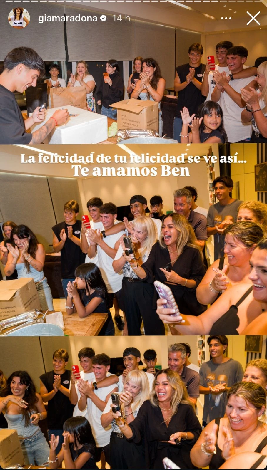 A través de sus redes sociales, la hija de Diego Armando Maradona compartió postales del festejo y expresó su emoción con un mensaje cargado de afecto. “Búsqueda del tesoro y una familia incondicional… los 17 llegaron con llave. Sos amor absoluto y celebrarte es maravilloso”, escribió, acompañando las imágenes del momento en que su hijo descubría la sorpresa.