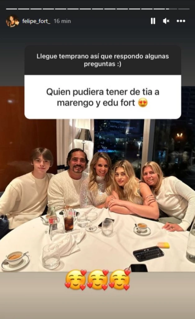 En el pasado, Marengo aseguró que consiguió tener una "una linda relación de ex” con Eduardo Fort y que ella personalmente se considera parte de la familia Fort. Sin embargo, no habló ella personalmente de reconciliación amorosa, aunque las fotos compartidas por Felipe son elocuentes.