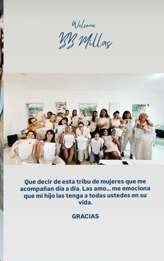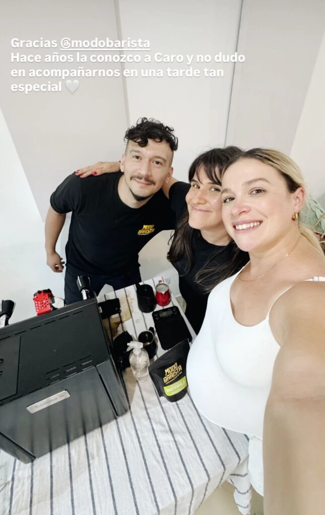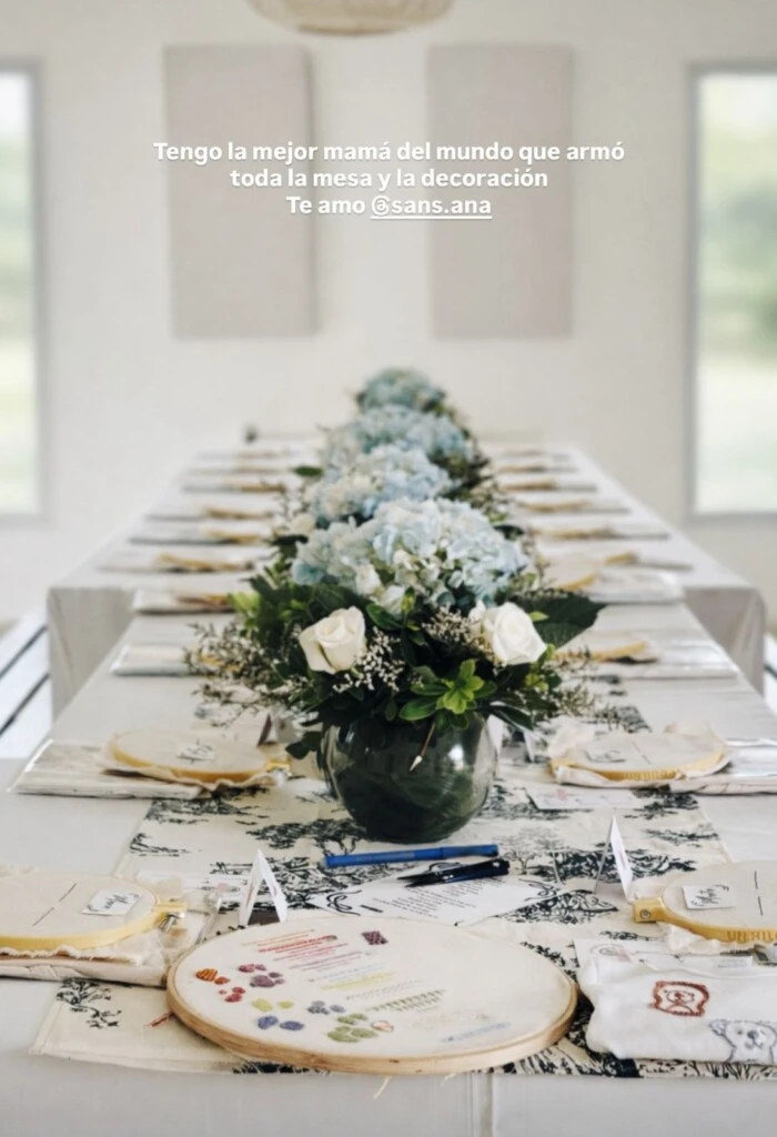 Según compartió en sus historias de Instagram, el encuentro tuvo un espíritu relajado y artesanal. Una de las actividades que más se destacó fue una clase de bordado en vivo, donde todas las invitadas participaron activamente: cada una bordó a mano ropita para el bebé, transformando la celebración en una experiencia colectiva y significativa, lejos del típico juego de baby shower y más cerca de un recuerdo hecho con amor.