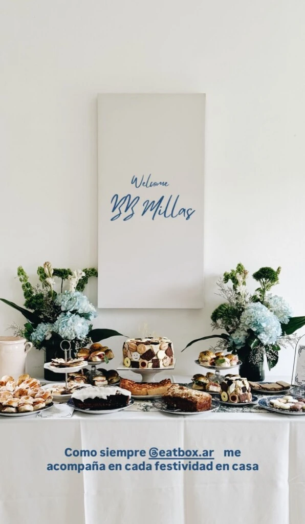 En el sector dulce, hubo un detalle que no pasó desapercibido y rápidamente llamó la atención en redes: la torta, que fue un pedido especial de la futura mamá. Se trató de un pastel original, decorado íntegramente con galletitas de todo tipo, colocadas una por una alrededor y sobre la superficie. Según contó Sofía, incluso las galletas fueron glaseadas individualmente, y además le prepararon una mini torta sin azúcar para ella, un gesto que terminó de conquistar a todos.