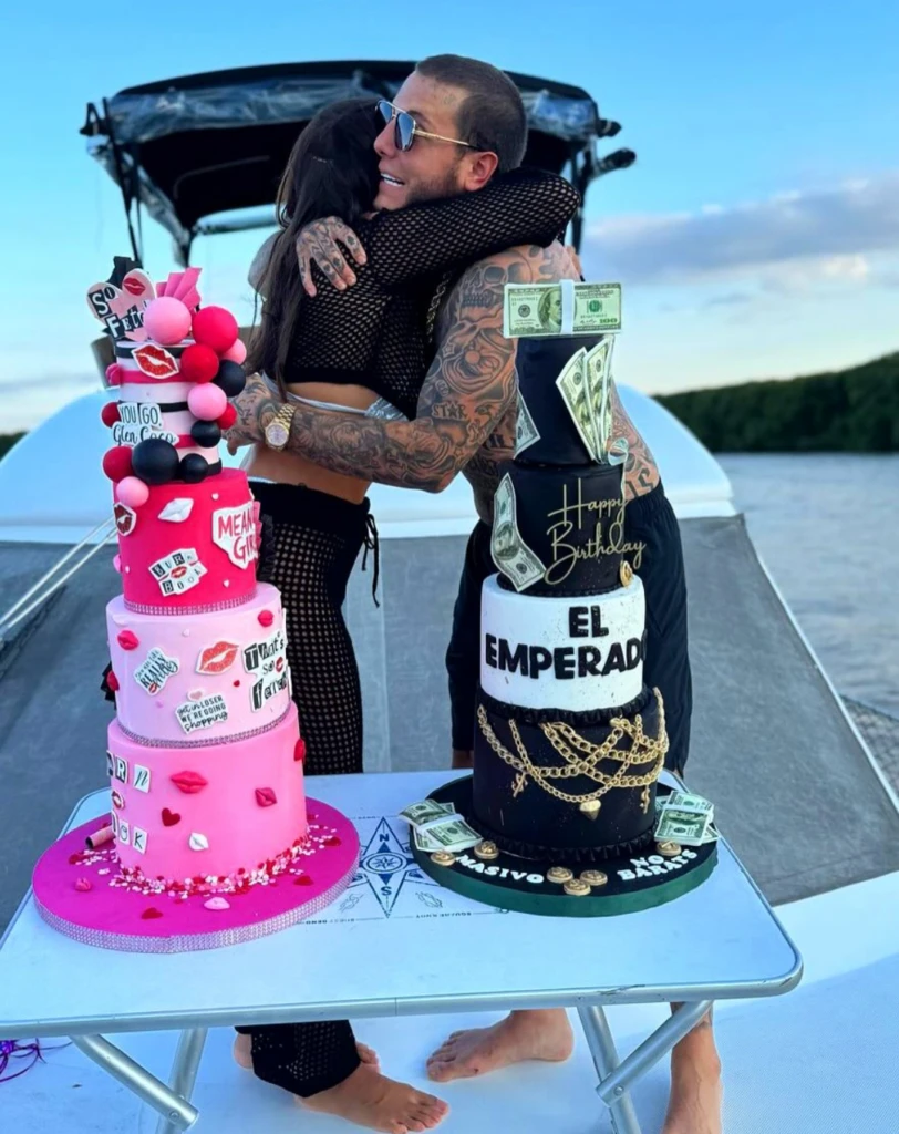 La torta de Charlotte fue en color rosa en diferentes tonos y sumó detalles de corazones, besos y frases que destacan su coquetería. Mientras que, la de Alex fue en color negro y blanco con muchos billetes de dólares y cadenas de oro, además de su típica frase: "No barats".