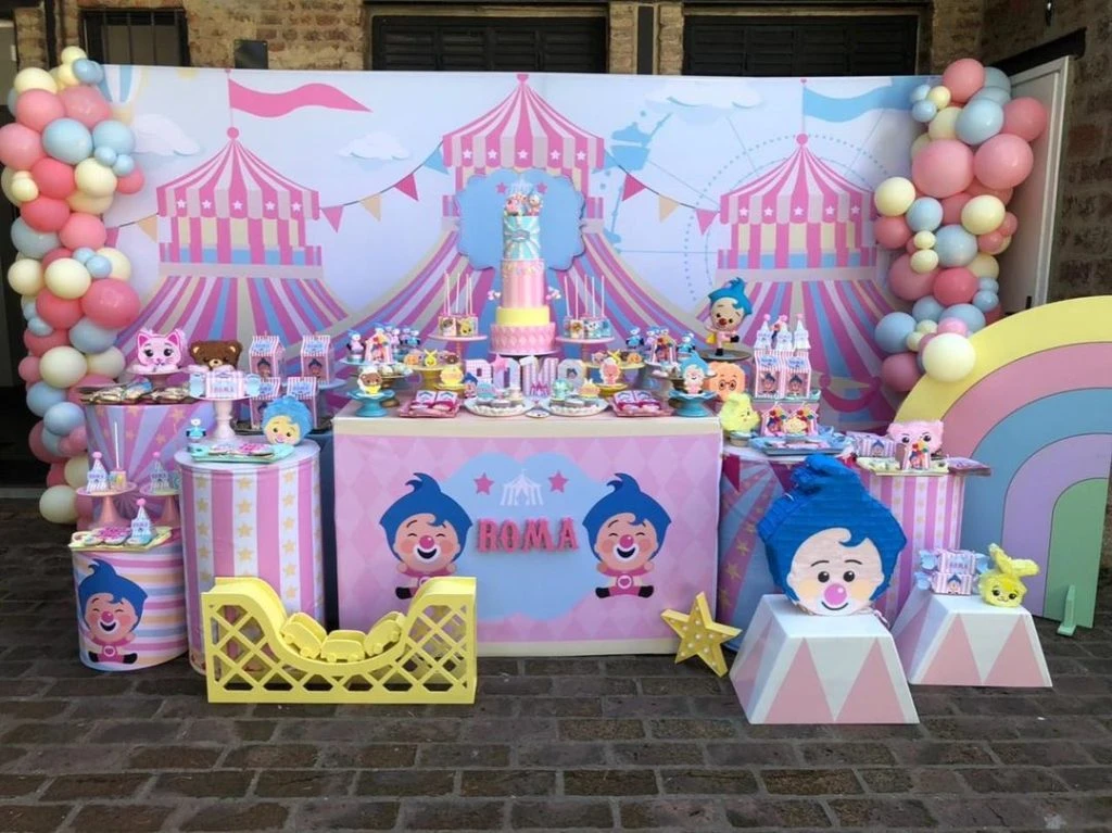Dalma y su pareja realizaron el cumple en un salón al aire libre y la temática fue "El payaso Plim Plim". El candy bar tuvo cookies, cupcakes, golosinas y una increíble torta.