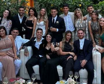 En la mesa principal, además de sus padres y su pequeña hija, Nina, se encontraban algunos de los integrantes de la Scaloneta con sus parejas.