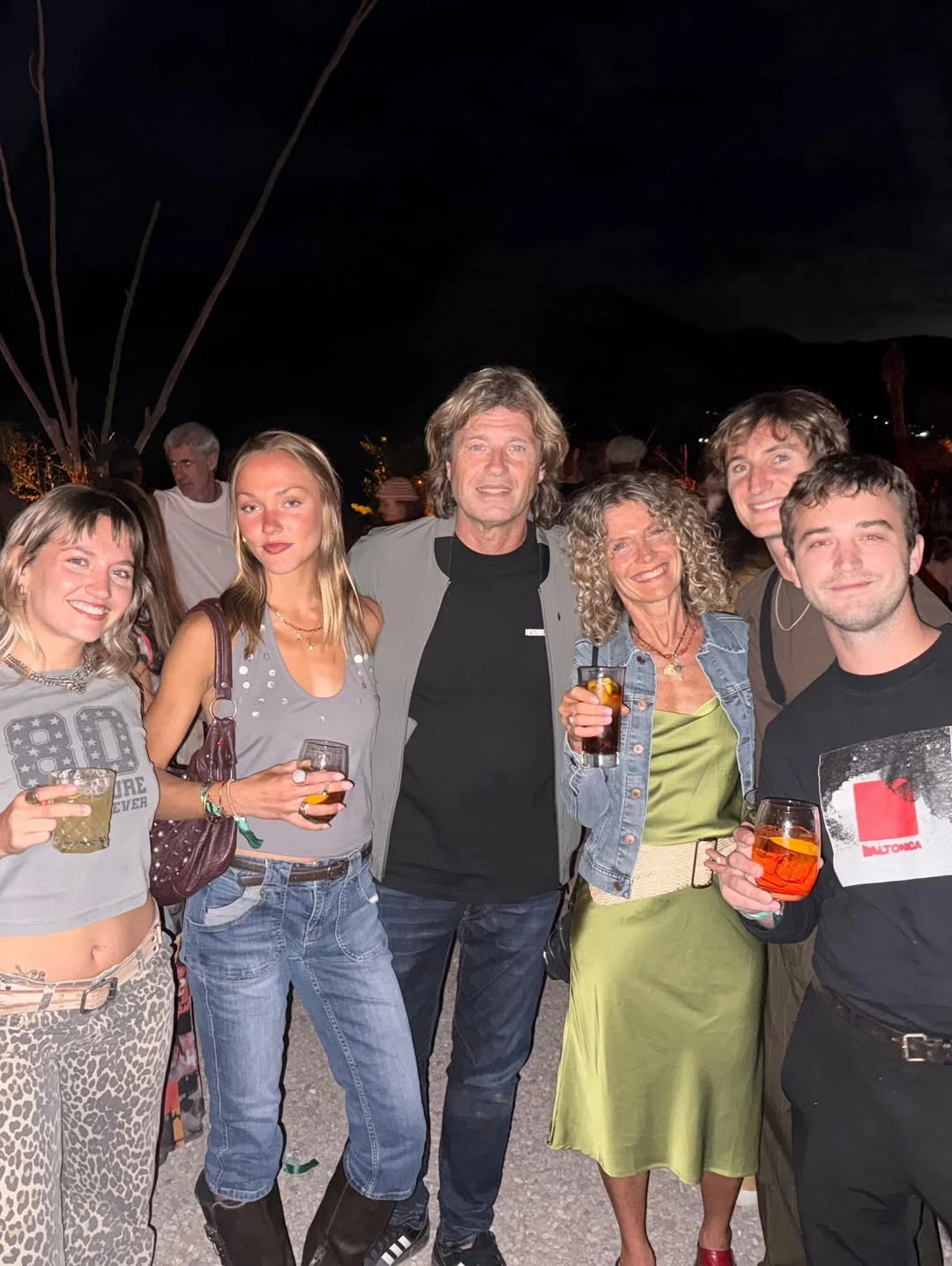 En las imágenes que compartió, se la ve radiante y relajada, bailando con un look verde satinado y luego con un vestido negro transparente, ideal para la noche mendocina. También posó junto a sus hijas, que lucieron outfits cancheros con jeans, crop tops y estampados animal print, perfectos para el clima festivalero.