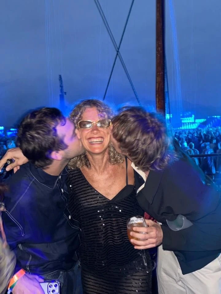 Entre las fotos más comentadas, aparece abrazada a Hernán Cattaneo, el protagonista de la noche, y en otra junto a Darian “Rulo” Schijman, periodista y conductor. Además, mostró momentos íntimos: besos y risas con sus hijos, brindis con amigos y almuerzos bajo pérgolas en bodegas locales, donde la gastronomía y el vino fueron parte del plan.