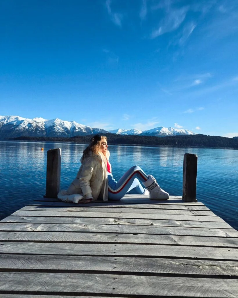 Además de representar a distintas marcas de indumentaria en la región, Emilia ha aprovechado para reencontrarse con viejos amigos y disfrutar de los impresionantes paisajes de la Patagonia, que se encuentran decorados con las primeras nieves de la temporada.