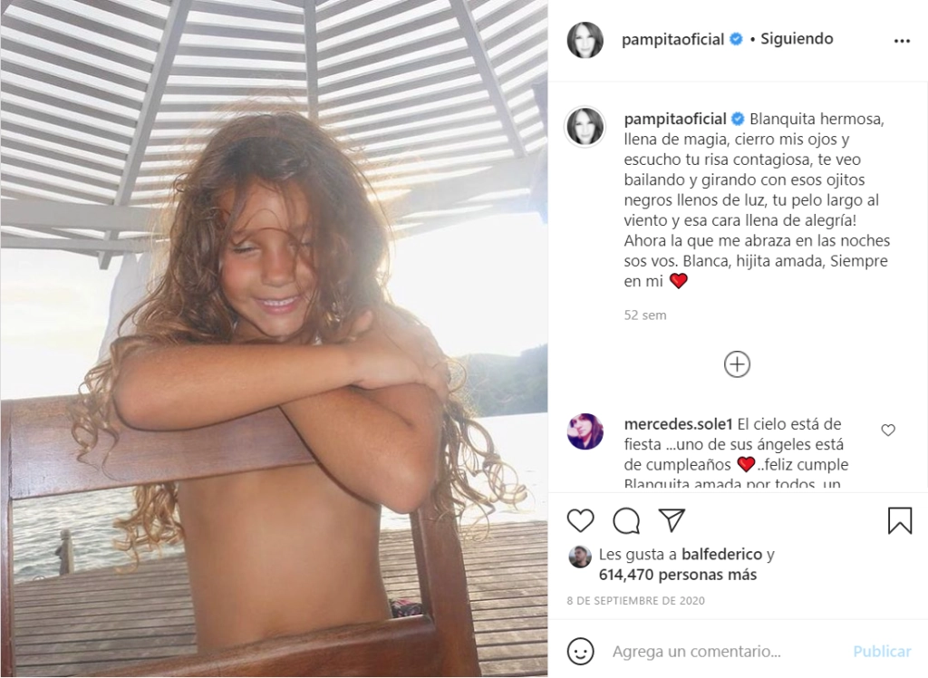 El año pasado Pampita recordó a su hija con un emotivo posteo, "cierro mis ojos y escucho tu risa contagiosa, te veo bailando y girando con esos ojitos negros llenos de luz, tu pelo largo al viento y esa cara llena de alegría!"..