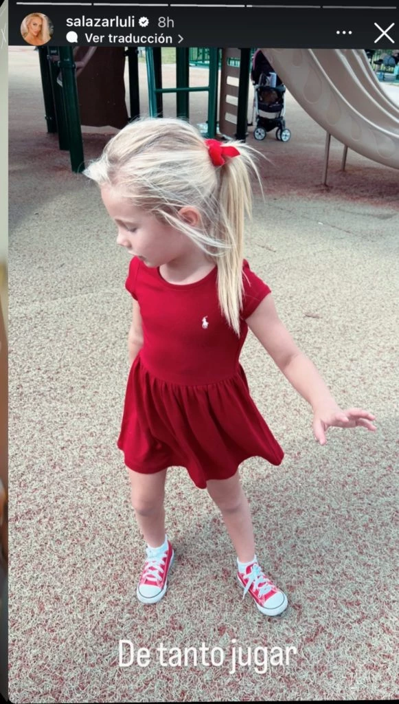 En la tarde del lunes ambas salieron a difrutar del aire libre. "Quien quedó agotada y muerta de calor de tanto jugar", escribió la modelo arrobando a su hija en una galería de fotos de la pequeña con un vestidito bordó y zapatillas tipo converse en la misma tonalidad.