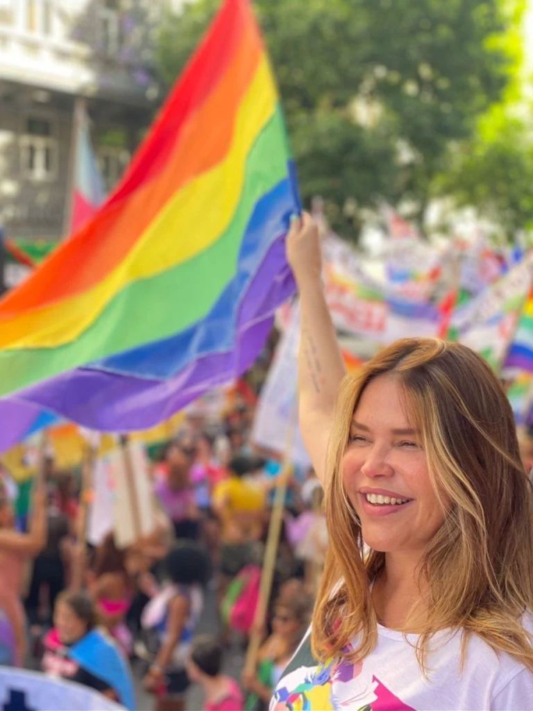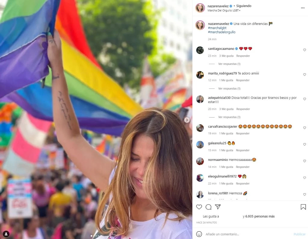 Entre las miles de personas que marcharon se encontraba Nazarena Vélez, que fue elegida para ocupar una de las carrozas que desfiló por el centro porteño. La actriz fue la reina de la carroza del colectivo 'EnRedadas' y estuvo acompañada por su pareja, Santiago Caamaño. Feliz de estar convocada, Nazarena se mostró simpática, sonriente y se sacó fotos con los allí presentes.