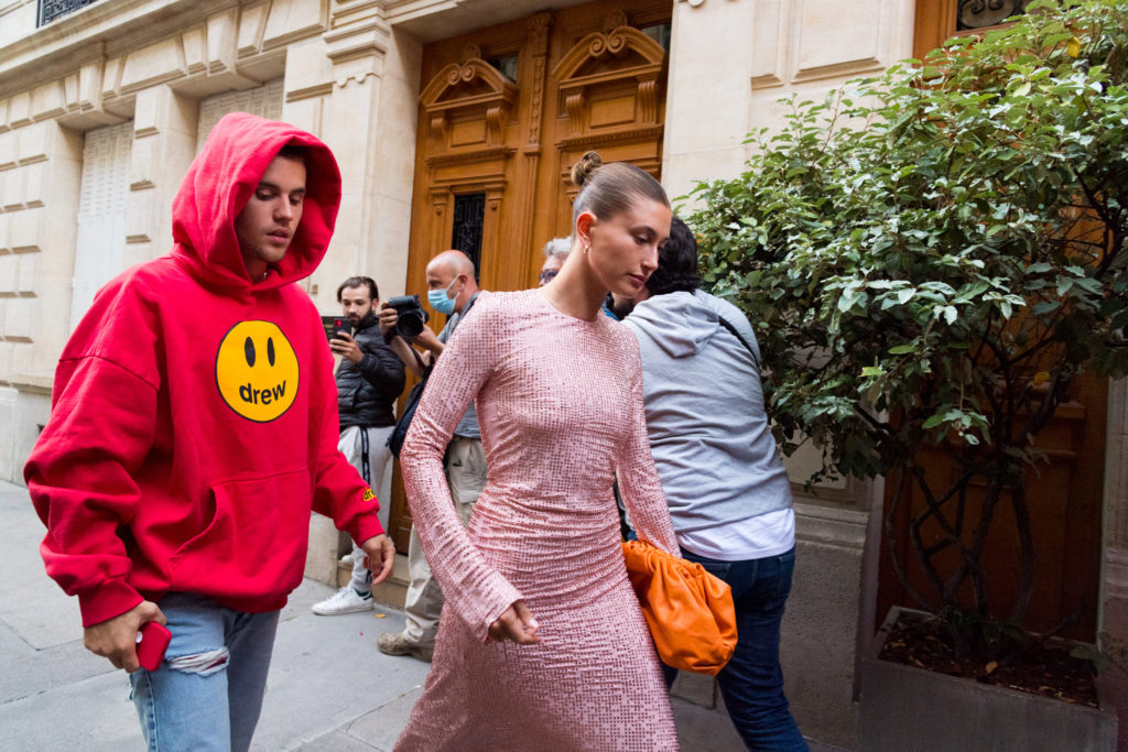 Baldwin eligió una canchera minifalda con abertura lateral y una musculosa de punto como todo outfit. Para complementarlo, sumó unos cómodos y bajos mocasines acharolados, gafas negras, bolso de mano también en lila y un ajustadísimo chignón que remató con un broche de carey. Por su parte y fiel a su estilo descontracté, Biebs apeló a un pantalón y uno de sus infaltables buzos hoodie.