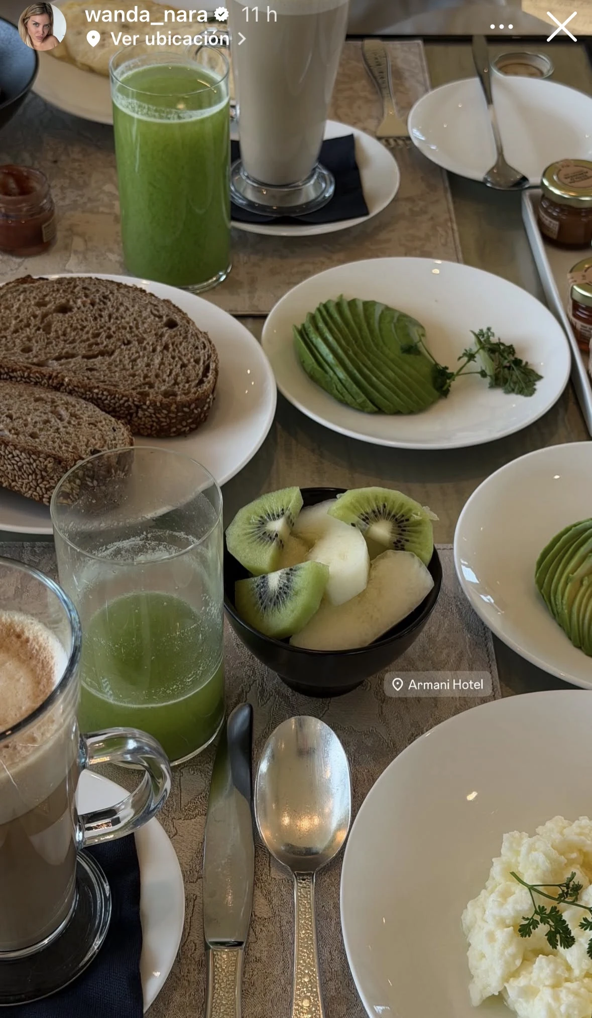 Los huéspedes disfrutan de cenas a cargo del Chef Ejecutivo Francesco Mascheroni, conocido por reinventar la cocina italiana con un toque contemporáneo. En este caso, lo que fotografió Wanda es un bruch frugal con jugos verdes. Todo en una paleta engamada, marca registrada del hotel.