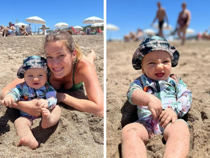 Muy emocionada Mica se mostró en las redes sociales sonriente a la orilla del mar con el bebé sacándose divertidas fotos en familia. "Su primer día de playa, momentos inolvidables en Mar del Plata con la familia", escribió muy contenta.