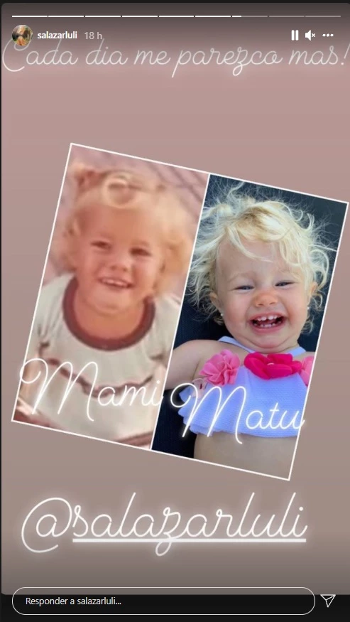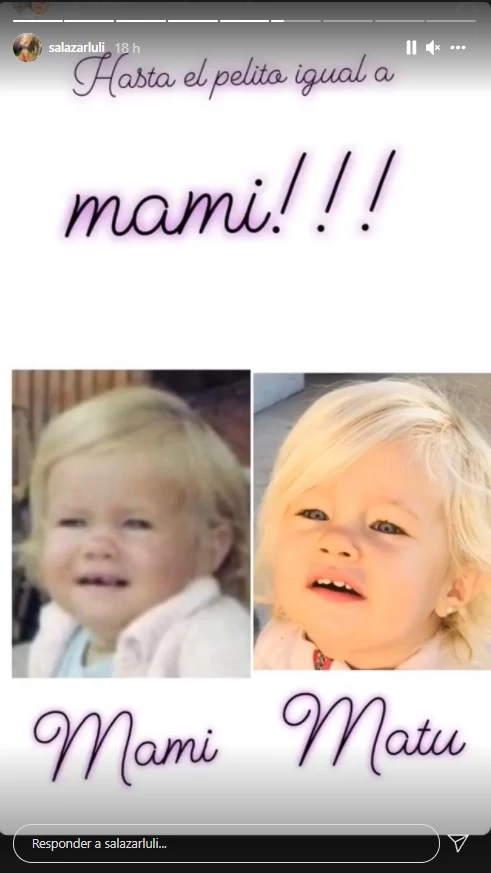 En una de las postales, se la puede ver a Luciana en su infancia con su cabello largo y rubio, y sonriendo a la cámara como suele posar Matilda. En otra, compartió dos imágenes donde se observa a la nena sonriendo y con el mismo peinado que su madre. "Hasta el pelito igual a mami", comentó Luciana en dicha publicación.