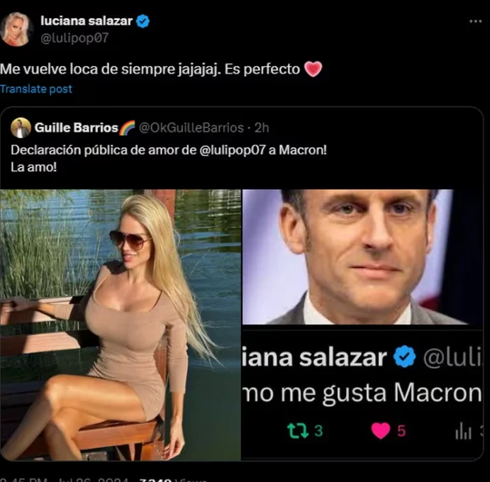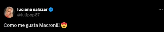 Luego de que su publicación se viralizara, Salazar volvió a dejar en claro lo que siente sobre Emmanuel Macron: "Me vuelve loca de siempre jajajaja. Es perfecto".