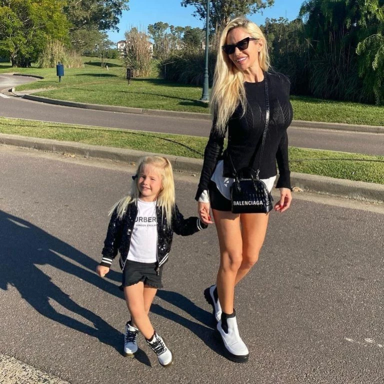 Durante el último fin de semana, las dos posaron frente a un pejo luciendo iguales. Luli utilizó una remera traslucida con una minifalda rosada que tenía un estampado escocés y una campera de cuero que acompañó con unos borcegos negros, una bandolera y gafas de sol. Por su parte, en la versión infantil del atuendo Matilda portó un vestido tejido rosa claro con medias blancas con accesorios en negro, como su madre.
