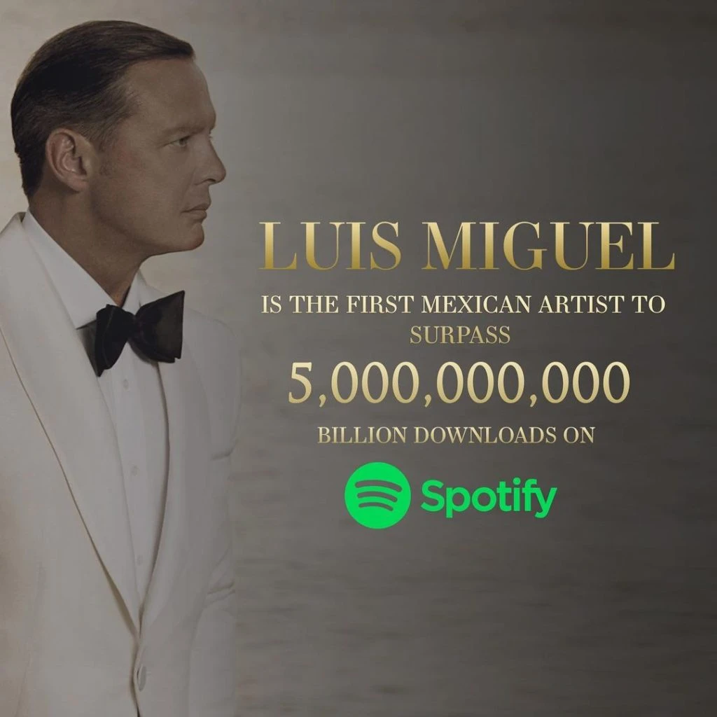 Luis Miguel compartió con sus fans la buena nueva: sus canciones superaron 5 mil millones de descargas en Spotify y lo convierten en el primer cantante mexicano en lograr estos números.