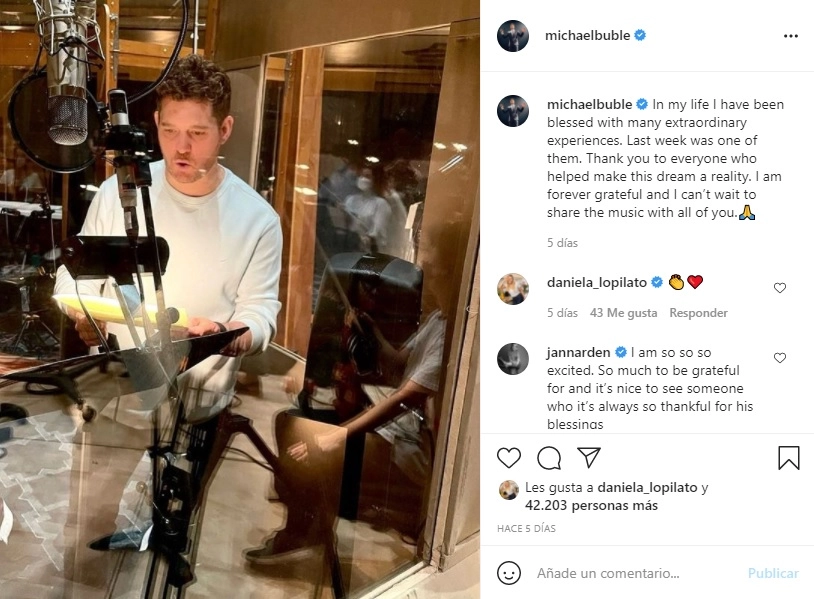 El cantante, por su parte, comentó el posteo de su esposa con emojis de caritas enamoradas y también utilizó su red social para agradecerle a las personas que cumplieron su deseo de grabar junto a ella. "Gracias a todos los que ayudaron a hacer realidad este sueño", manifestó sincero.