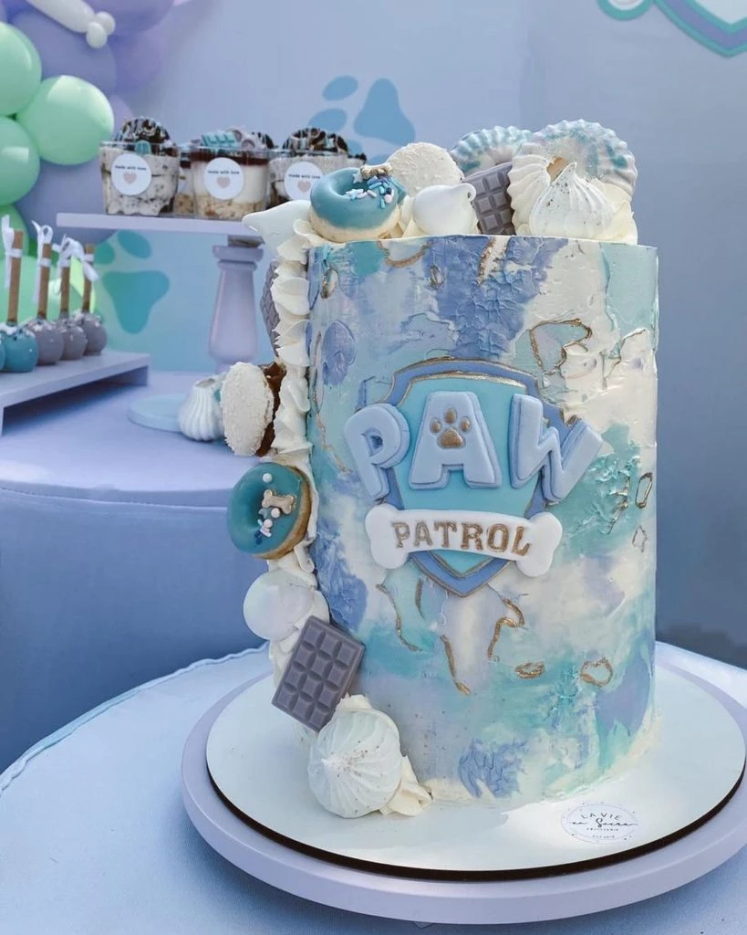 La misma estuvo a juego con la decoración de las mesas, con las cookies que se sirvieron (en formas de huellitas y huesitos) y con la torta en tonos celestes que Magnolia admiró desde los brazos de su hermana mayor, Rufina Cabré Suárez (7).