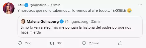 Lali citó su tuit y respondió: "Y nosotros que no lo sabemos, lo vemos al aire todo. Terrible", se defendió la jurado de La Voz Argentina.
