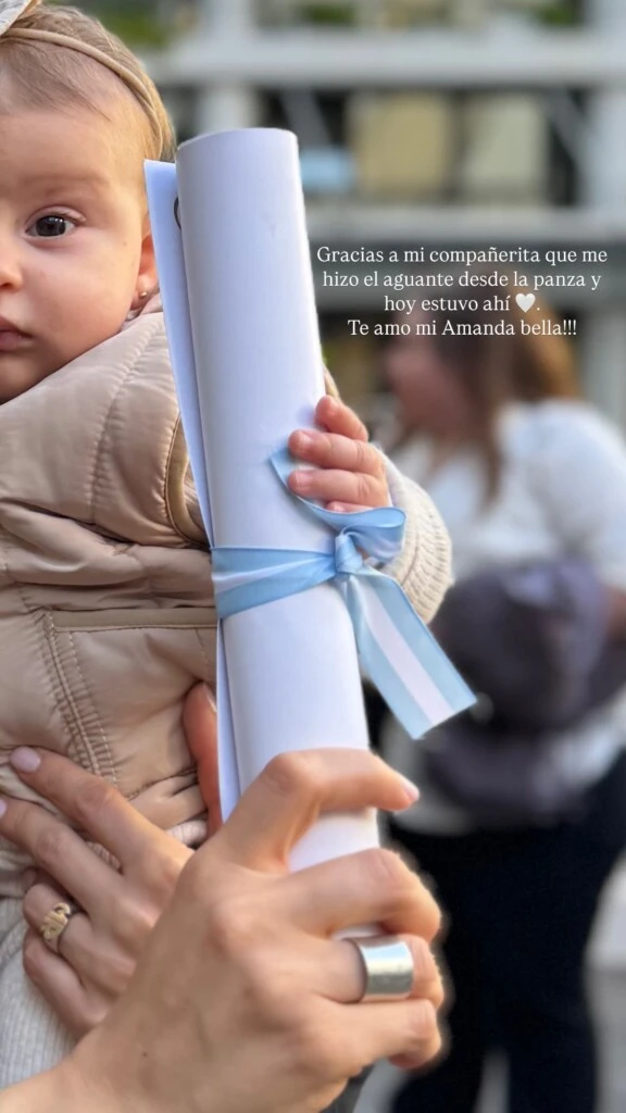 Allí también compartió una tierna foto junto a su hija, nacida el 15 de enero de este año: “Gracias a mi compañerita que me hizo el aguante desde la panza y hoy estuvo ahí. Te amo mi Amanda bella”. De la misma forma, le dedicó otro posteo a Fede Hoppe, el padre de su hija: “Gracias amor por tu apoyo, siempre, siempre… Todo es más hermoso desde que lo comparto con vos. Mi equipo, mi par, gracias por celebrar mis sueños”.