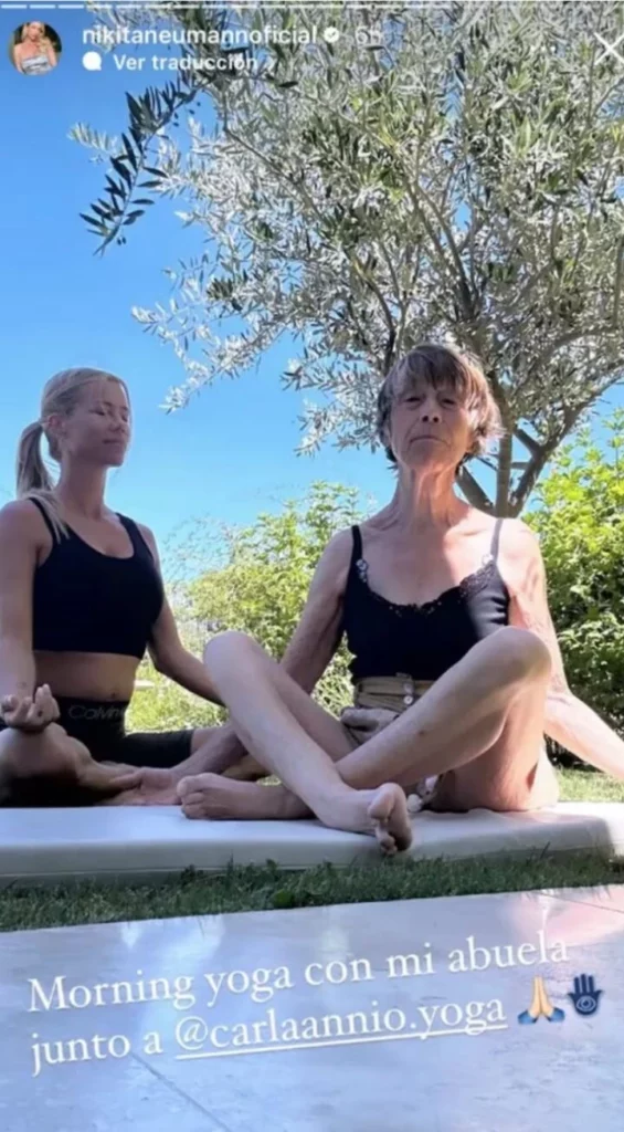 Desde sus historias de Instagram la modelo se mostró súper relajada practicando yoga junto a su abuela.