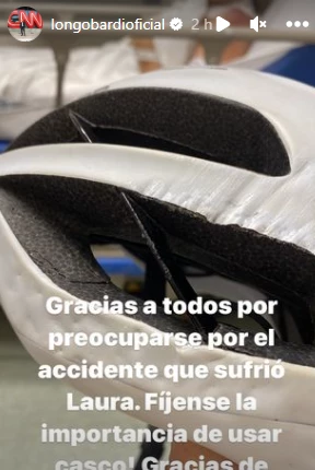 El relato del periodista cobró tal magnitud por lo cual recibió cientos de mensajes de preocupación. Horas más tarde escribió en sus redes sociales mostrando cómo había quedado el casco de su pareja y recordó la importancia de su uso.