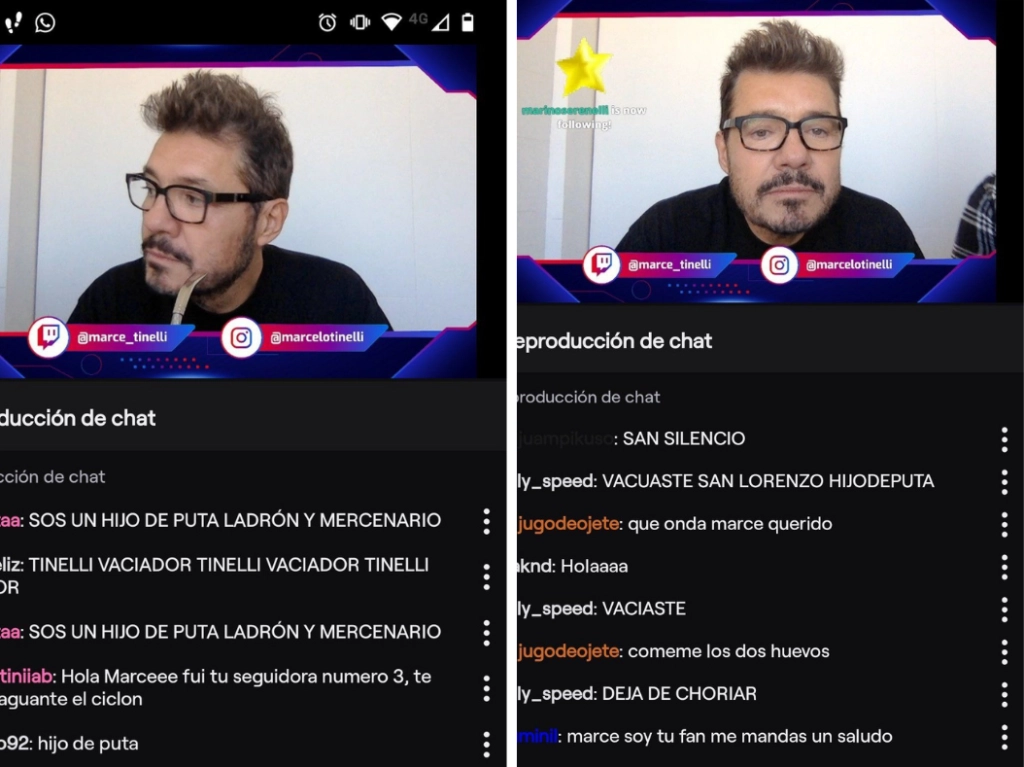Apenas activó su cuenta y empezó a transmitir en vivo, el conductor posteó en sus redes sociales y velozmente la voz se corrió entre los más jóvenes. Muchos fanáticos se sumaron a la transmisión para ver su primer stream, mientras que los 'haters' aprovecharon la situación para insultarlo principalmente por la disconformidad con el Club San Lorenzo. Por este mal momento, Marcelo Tinelli optó por finalizar el vivo.